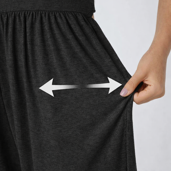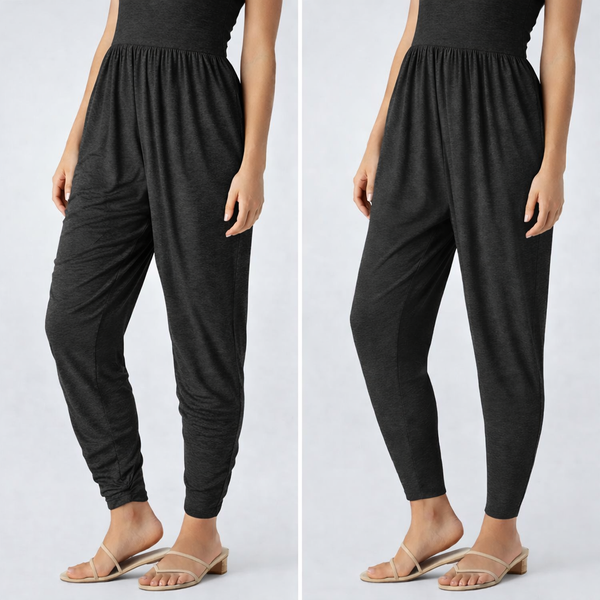 Materiał jest bardzo przyjemny w dotyku i wygląda premium. Przy pierwszym założeniu wydawał się lekko dopasowany 😅, ale po chwili noszenia wszystko układa się idealnie. Krój harem jest luźny i komfortowy, a skręcony dekolt U świetnie wygląda.